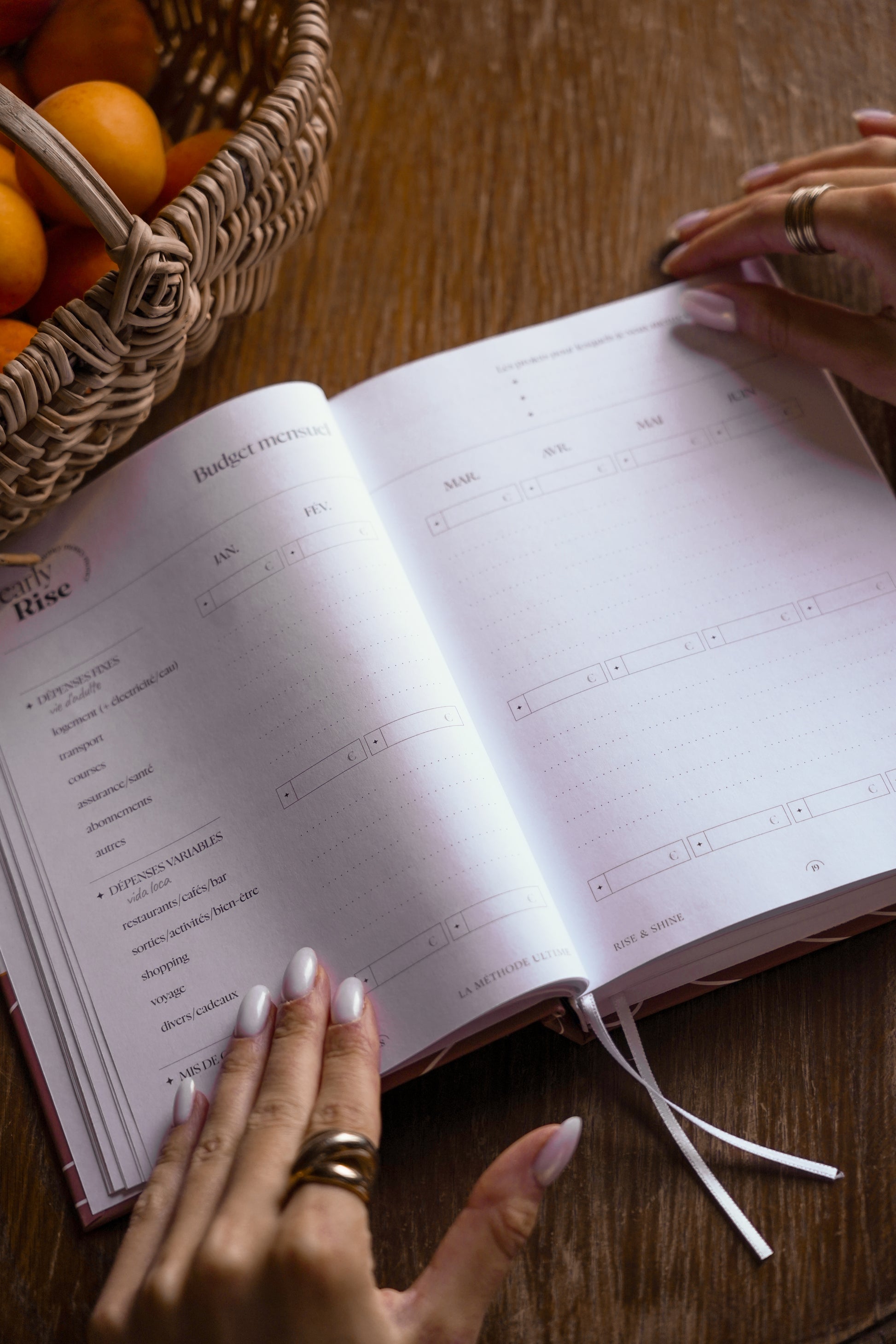 Cet agenda non-daté a été conçu pour organiser tous les aspects de notre vie dans un seul et même carnet, trouver l'équilibre pro/perso au quotidien et rester motivés grâce à la méthode ✨Rise&Shine✨