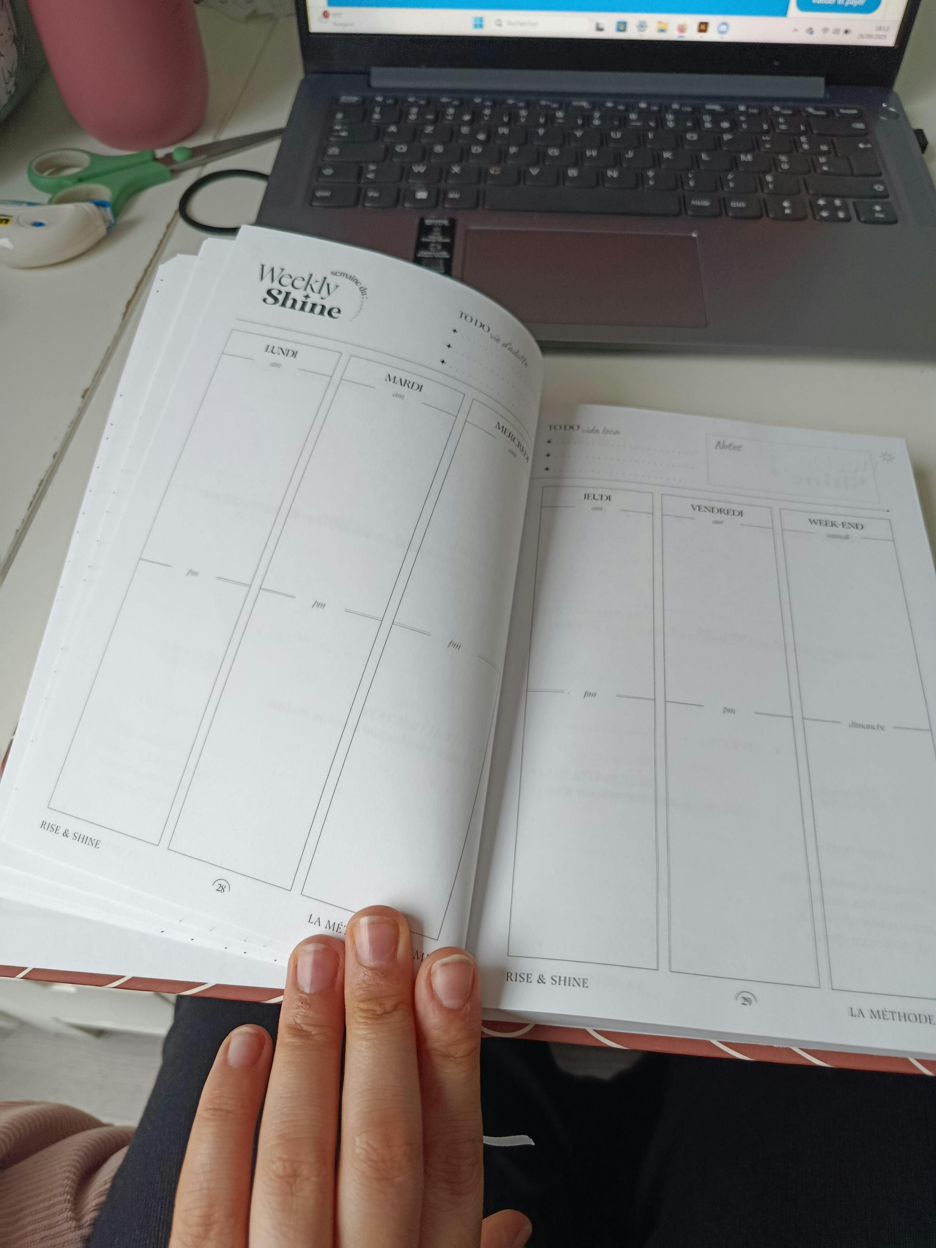 - WEEKLY SHINE : objectifs pro/perso & planning de la semaine, idées recettes et listes de courses, habits tracker & journaling