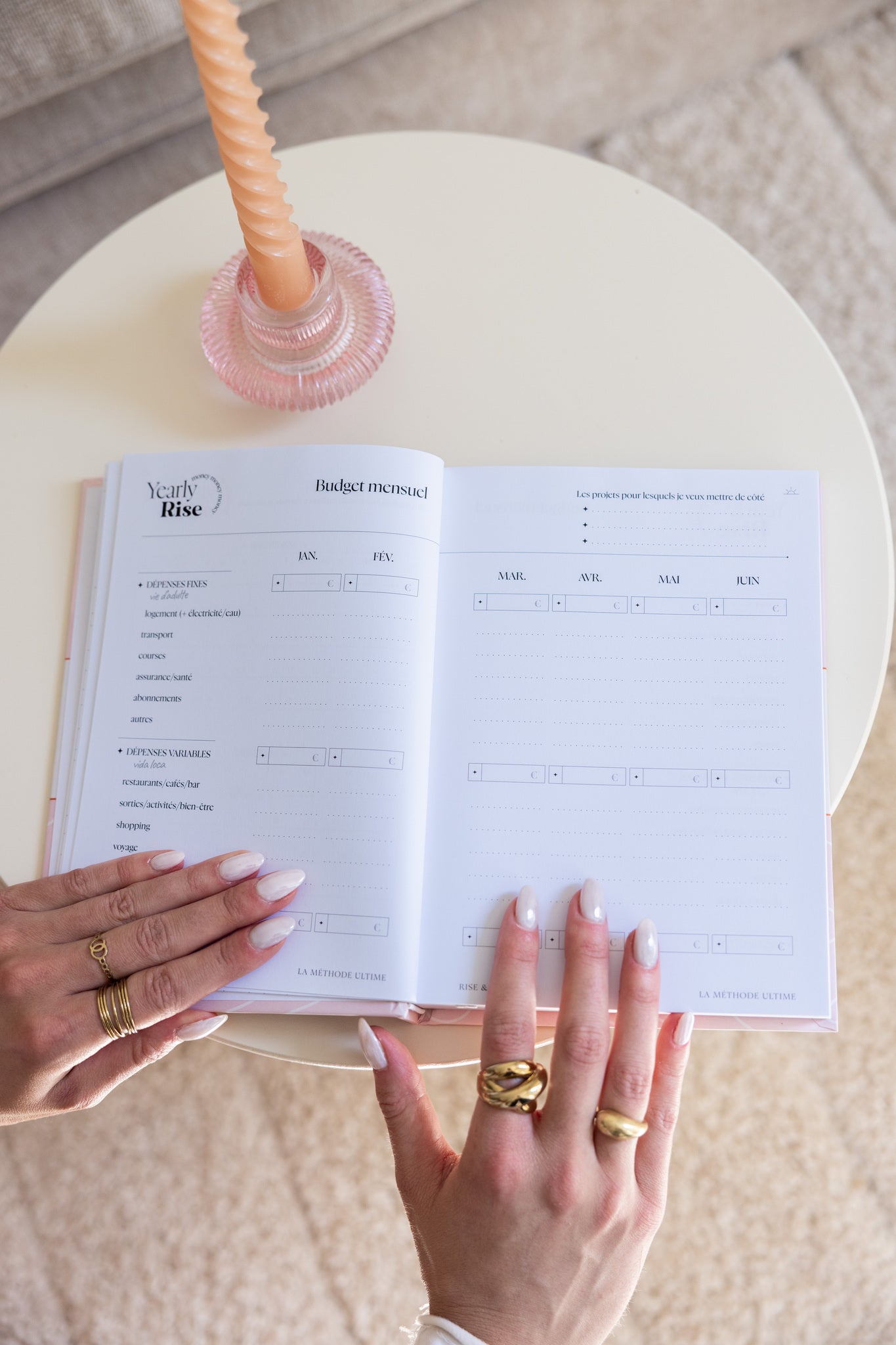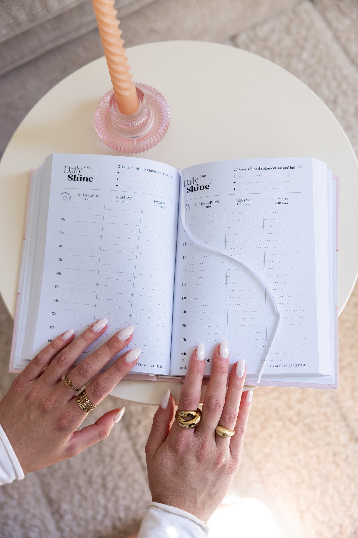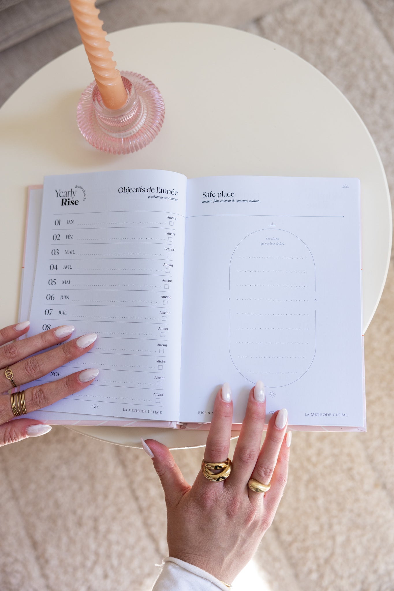 Cet agenda non-daté a été conçu pour organiser tous les aspects de notre vie dans un seul et même carnet, trouver l'équilibre pro/perso au quotidien et rester motivés grâce à la méthode ✨Rise&Shine✨