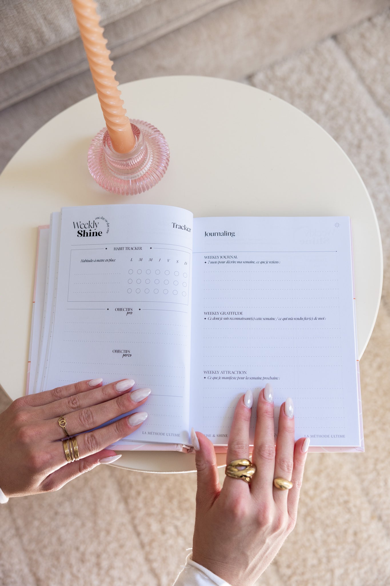 - WEEKLY SHINE : objectifs pro/perso & planning de la semaine, idées recettes et listes de courses, habits tracker & journaling